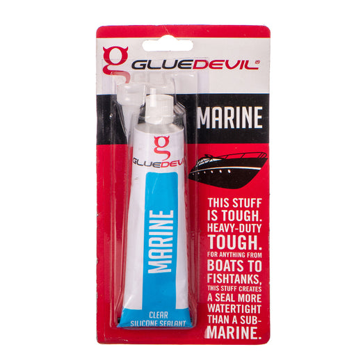 Gluedevil Marine silicone sealant adheres to glass, fibreglass, ceramics, wood canvas, rubber, painted or vanished surfaces and most plastics and metals.